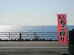 1月から5月までのいちご狩りシーズンに久能海岸沿いを走ると、