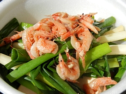 「沖あがり」は、桜えびをねぎや豆腐と一緒に煮込んだ郷土料理で、