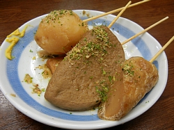 店のおすすめは、「牛すじ」、「黒はんぺん」、「だいこん」。