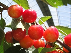 まだ誰も手を付けていない木にはたくさんのさくらんぼが