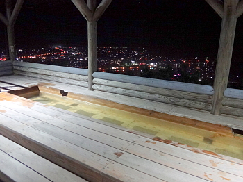 萩の夜景を眺めながら足湯を楽しみました。 |